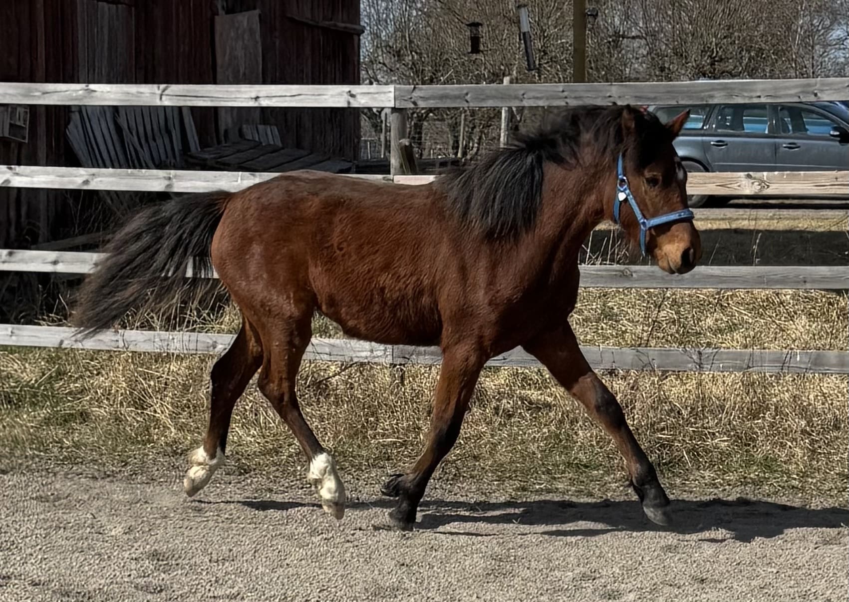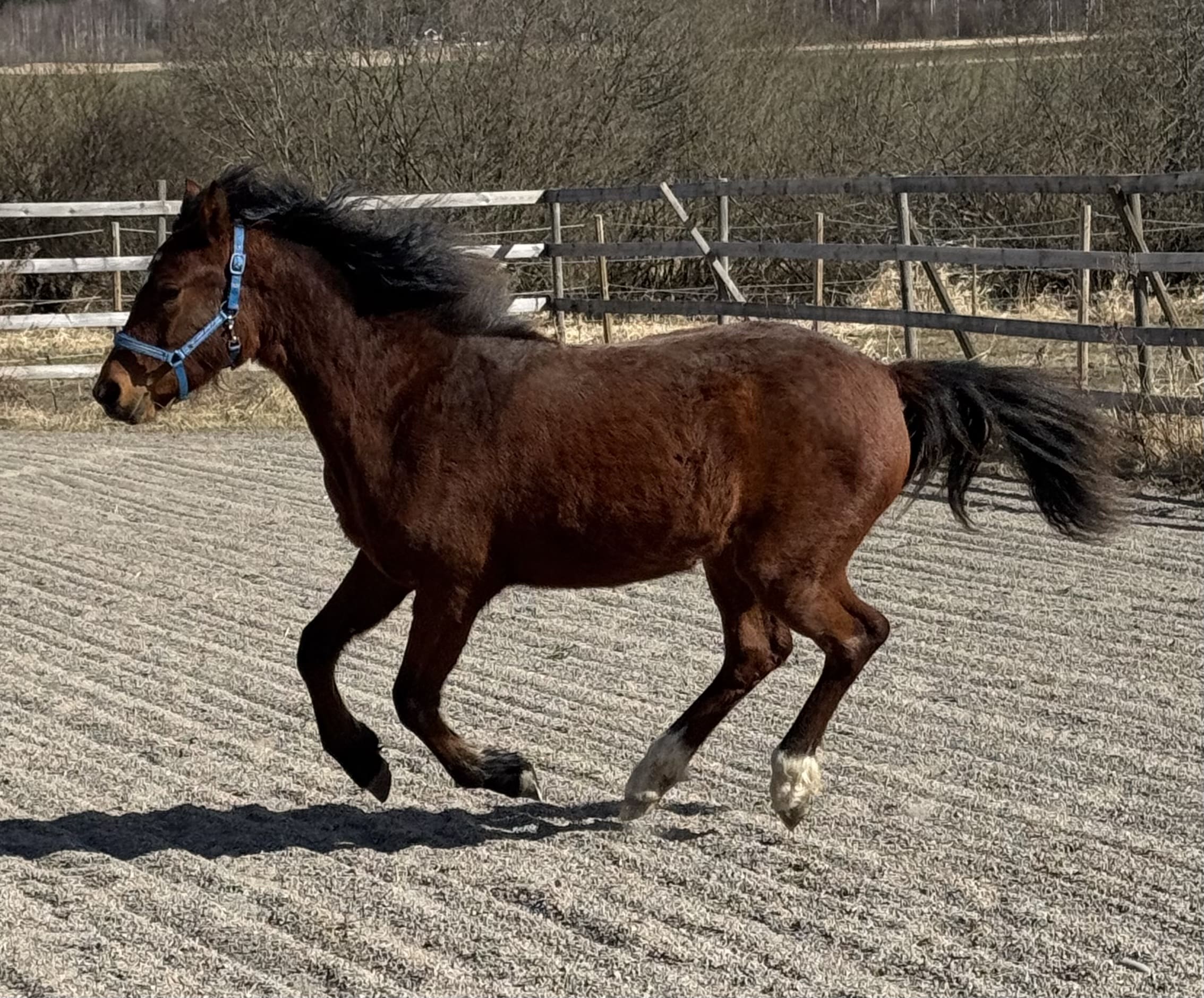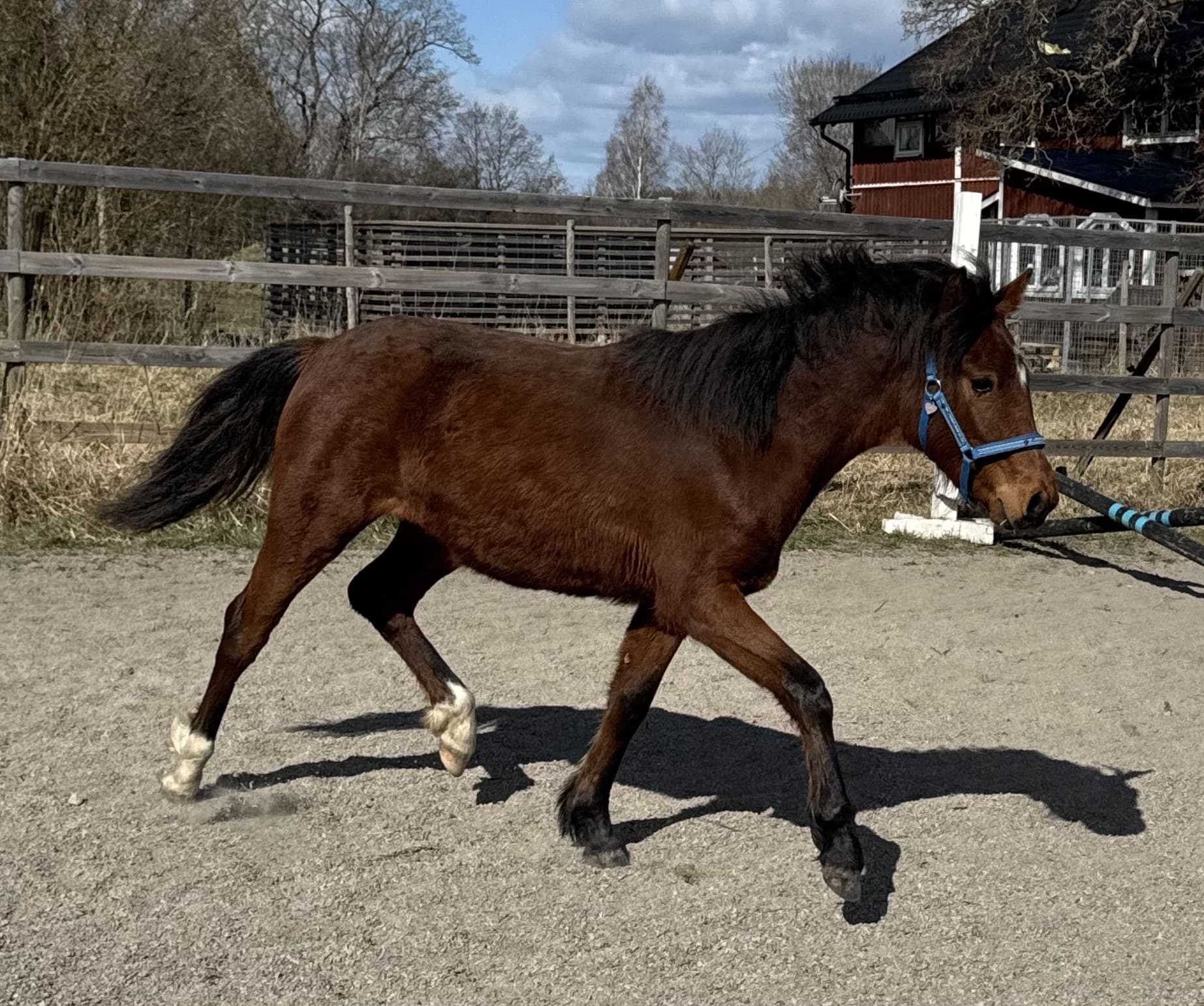 Ettåring med fint temperament, framtida barn/ungdomshäst. Tycker om att hoppa små bommar redan.